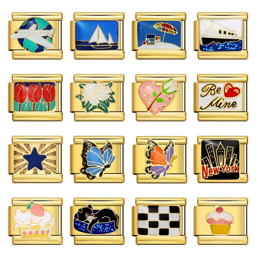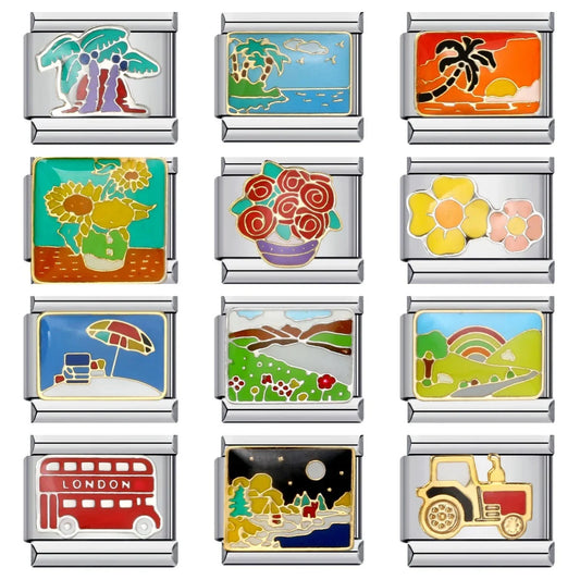 Vivid Voyage Charms + Enamel Cloisonné Art + Stainless Steel Italian Links Build your story...