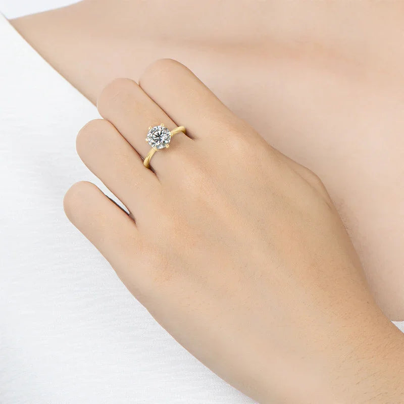 The Alurea Solitaire Ring embodies timeless refinement — a luminous six-prong round brilliant stone mounted on a sleek, high-polish 18K gold–plated S925 sterling silver band. Elegant, durable, and irresistibly radiant for modern luxury expression.