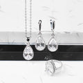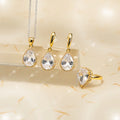 Illuminate your elegance with the Radiara Pendant Set — a refined ensemble of necklace, earrings, and ring crafted in gold-tone metal with radiant pear-cut stones. Designed for sophistication and everyday versatility, this set delivers timeless sparkle with a premium finish.