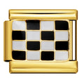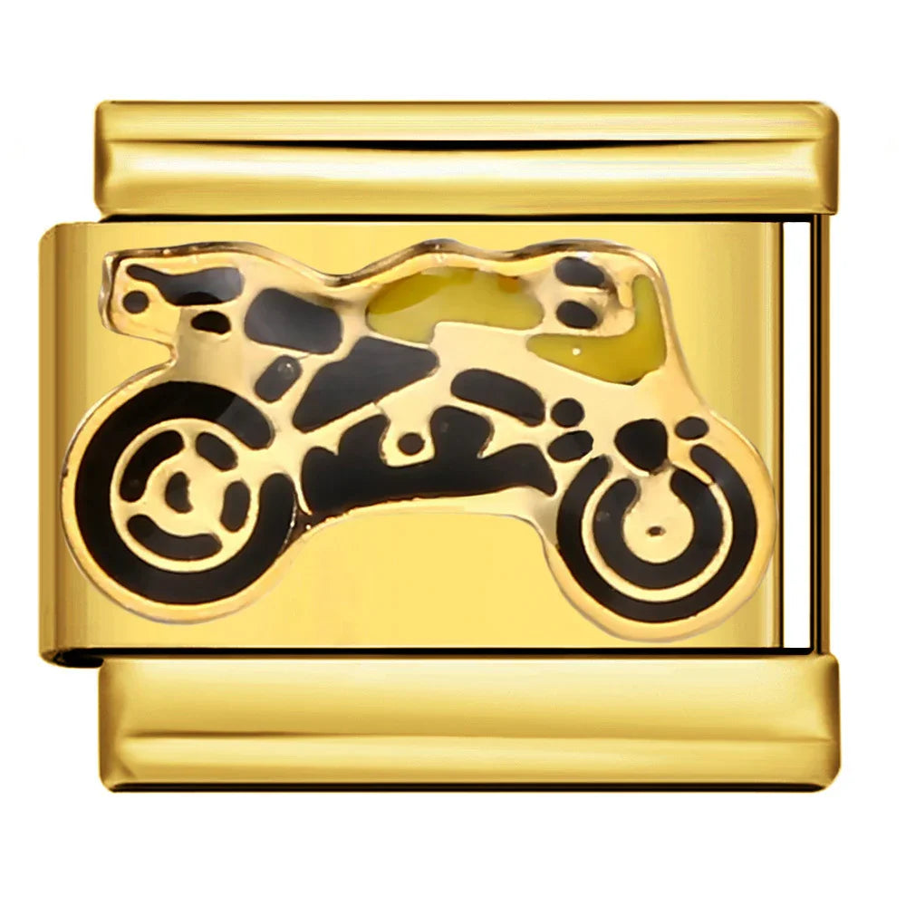 Each link is framed in polished gold-tone metal with precise cloisonné partitions and level enamel fills for crisp lines, vibrant color blocks, and a premium studio-grade shine.