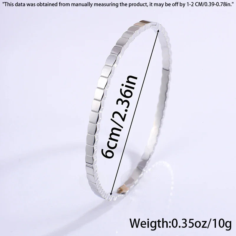Engineered for all-day comfort, this bracelet features a smooth, rounded design and is made from titanium steel, a lightweight yet strong material. The minimalist style allows for easy stacking with other jewelry, offering a refined, modern look that is both comfortable and stylish. The irregular honeycomb design gives it a contemporary edge, while the flexibility ensures it fits most wrist sizes comfortably.