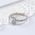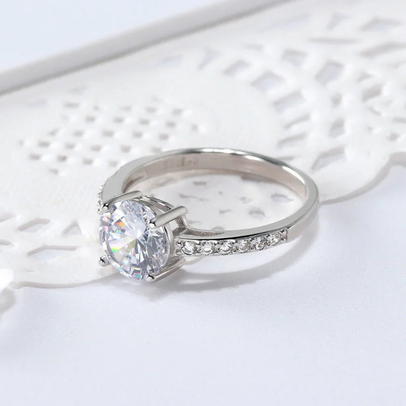 Elevate your look with a timeless solitaire ring in S925 sterling silver. A round brilliant center stone shines in a secure 4-prong setting, while pavé accents add refined sparkle. Mirror-polished, hypoallergenic, and perfect for proposals, gifting, or daily elegance.