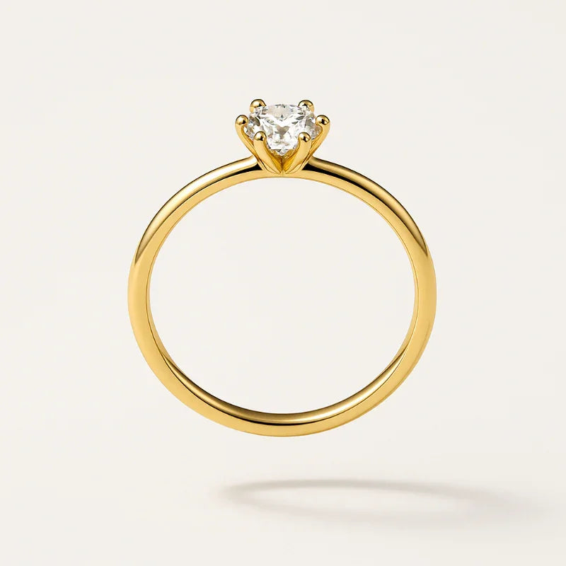 Elevate your look with the Celeste Solitaire Ring — a refined blend of minimalism and sophistication. Featuring a round brilliant-cut stone on a slim, mirror-polished gold band, it delivers timeless beauty and everyday elegance with effortless shine.